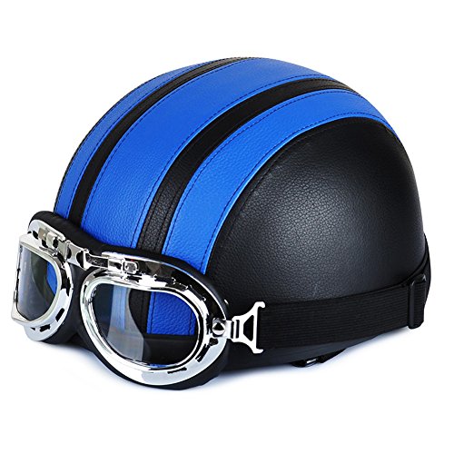 You buy Motorcycle Helmets Vintage Unisex Leather Harley Half Helmets 54-60cm with UV Goggles Blue with Coupon : OVANCI will be discounted 10%