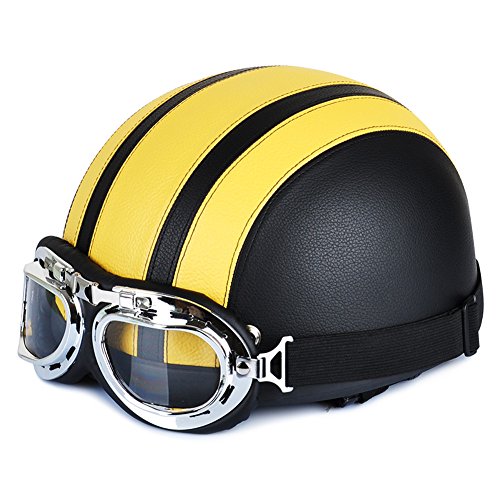 You buy Motorcycle Helmets Vintage Unisex Leather Harley Half Helmets 54-60cm with UV Goggles Yellow with Coupon : OVANCI will be discounted 10%