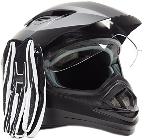 Dual Sport Helmet Combo w/ Gloves - Off Road Motocross UTV ATV Motorcycle Enduro - Matte Black , Black - XXL