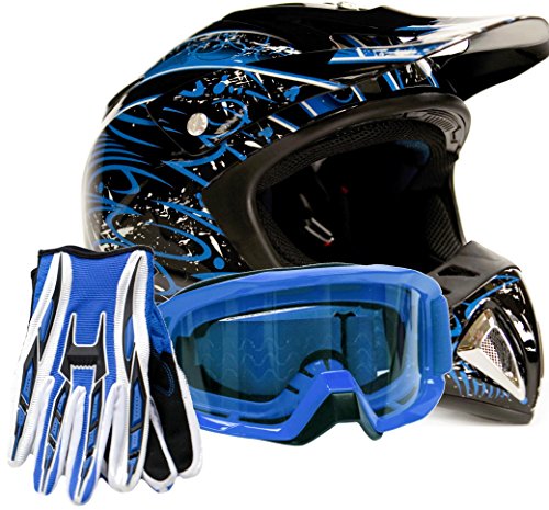 Why Use Adult Offroad Helmet Goggles Gloves Gear Combo DOT Motocross ATV Dirt Bike MX Black Blue Splatter ( 2X ) ?