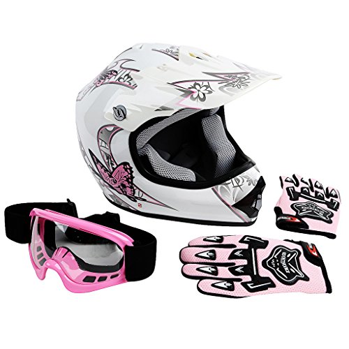 XFMT Youth Kids Motocross Offroad Street Dirt Bike Helmet Goggles Gloves Atv Mx Helmet Pink Butterfly M