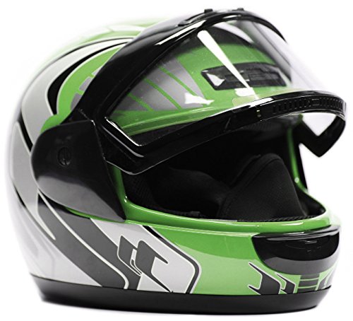 Snowmobile Helmet Adult Full Face Dual Lens Anti Fog Green, Medium